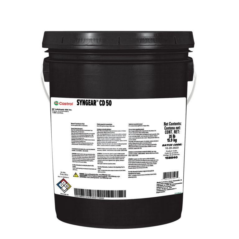 Castrol Syngear CD 50 is a specially formulated synthetic transmission fluid designed for extended drain and severe service in heavy-duty manual transmissions which require a non EP gear or transmission fluid. Castrol Syngear CD-50 formulated from a synthetic base stock with a high viscosity index and low pour point, provides superior all-climate, year round performance. It also contains an anti- wear additive as well as rust, oxidation and corrosion inhibitors.