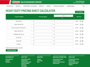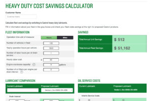 Heavy Duty Tools AllSelling ToolsQuestionnairesCalculators HD Master Pitch Deck Download HD Products Brochure Download Castrol Product Recs by HD Equipment Type Download Castrol Guide to Product and Services (GPS)A Guide to Products and Services View Page HD OEM Spec Sheets Download Castrol HD Lubricants Application Reference Guide Download Castrol HD Digital Assets Download HD Prospect Checklist Download HD Off Road Questionnaire Download HD Truck Workshop Questionnaire Download Off-Road Customer Profiling Tool Download HD Cost Savings CalculatorCalculate fleet cost savings by switching to Castrol heavy-d... Use Calculator Heavy Duty Pricing SheetCalculate installer net price per gallon with allowances for... Use Calculator Fleet Savings CalculatorProvides prospects with potential savings by switching to Ca... View Page