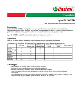 Sales Training Metalworking Fluids & Lubrication Principles Training - West Metalworking Fluids & Lubrication Principles Training - East Hysol SL 30 XBB - Product Data Sheet Hysol SL 30 XBB - Material Safety Datasheet Industrial XBB Brochure Hysol SL 30 XBB - Sales Presentation The Learning Campus Industrial Sales Presentation PowerPoint Castrol TurfView BI - Introductory Video Download Video