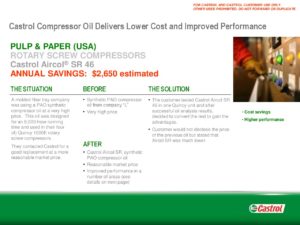 Aircol SR 46Aircol SR 46 (Pulp and Paper) Quincy Compressors CS-MCPP-104 Application: Rotary screw compressors, Quincy 1000E Key Benefits: Lower price, equal performance. |