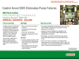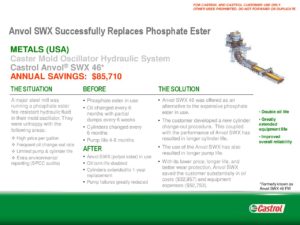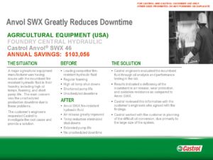 Anvol SWX 46Anvol SWX 46 (Agriculture) Foundry Central Hydraulic CS-MMDC-101 Application: Lower price per gallon, reduced foam, extended pump life, less downtime, lower oil temperature |