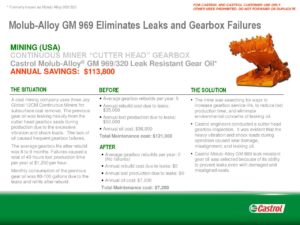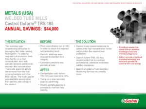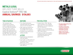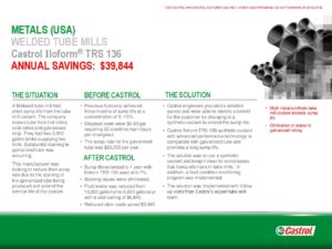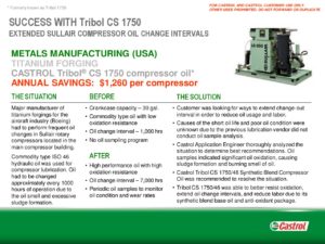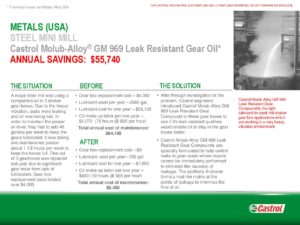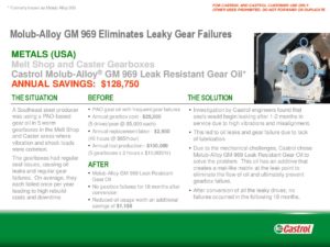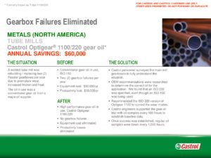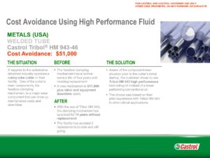 Cost Avoidance Using High Performance FluidTribol HM 943-46 (Tube Mill) Rotary Cutter Feedbox CS-MTTM-121 Key Benefits: Eliminated component wear, reduced downtime, lower maintenance costs |
