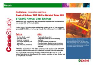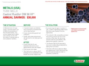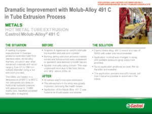 Dramatic Improvement with Molub-Alloy 491 C in Tube Extrusion ProcessMolub-Alloy 491 C (Tube Mill) Tube Extrusion Process CS-MTTM-122 Key Benefits: Eliminated smoke and fumes, improved application method, better operator acceptance, improved health and safety |
