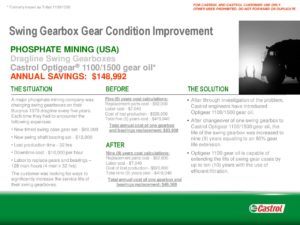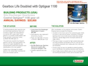 Gearbox Life Doubled with Optigear 1100Optigear 1100-1000 (Building Products) Silo Discharger Gearboxes CS-MCGY-102 Key Benefits: Extended gearbox life, eliminated gearbox failures, less downtime, lower maintenance costs |