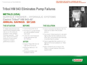 Tribol HM 943-46 (fka Tribol 943AW-46)Tribol HM 943-46 (Metals) Pump Failure Elimination CS-MTOT-102 Application: Hydraulic system, Eaton Vickers pumps Key Benefits: Elimination of pump failures |